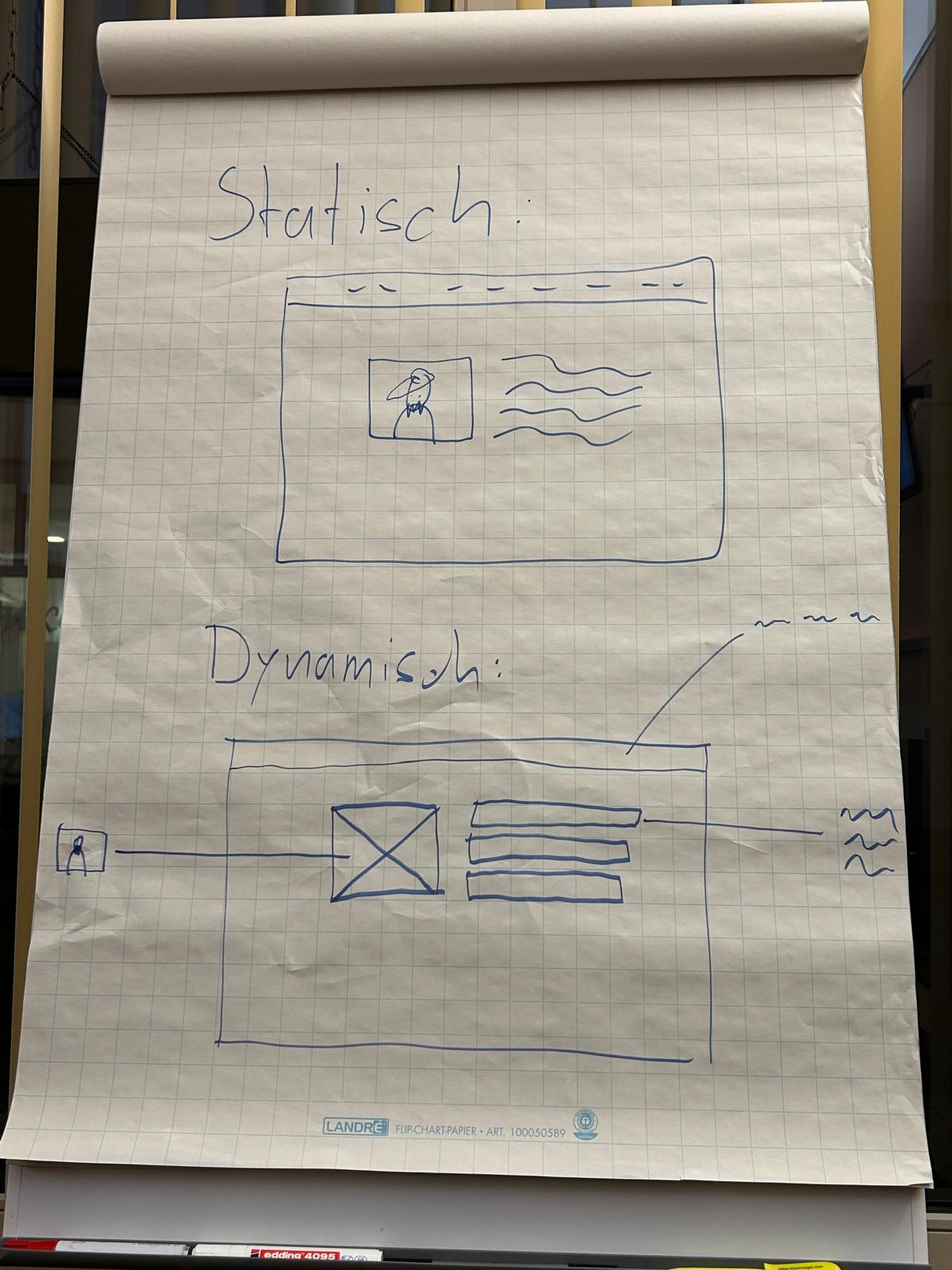 Wir haben auch erfahren, was der Unterschied zwischen einer statischen und dynamischen Website ist. Statisch bedeutet so viel wie fest oder nicht veränderbar. Dynamisch meint das Gegenteil: veränderlich oder beweglich.