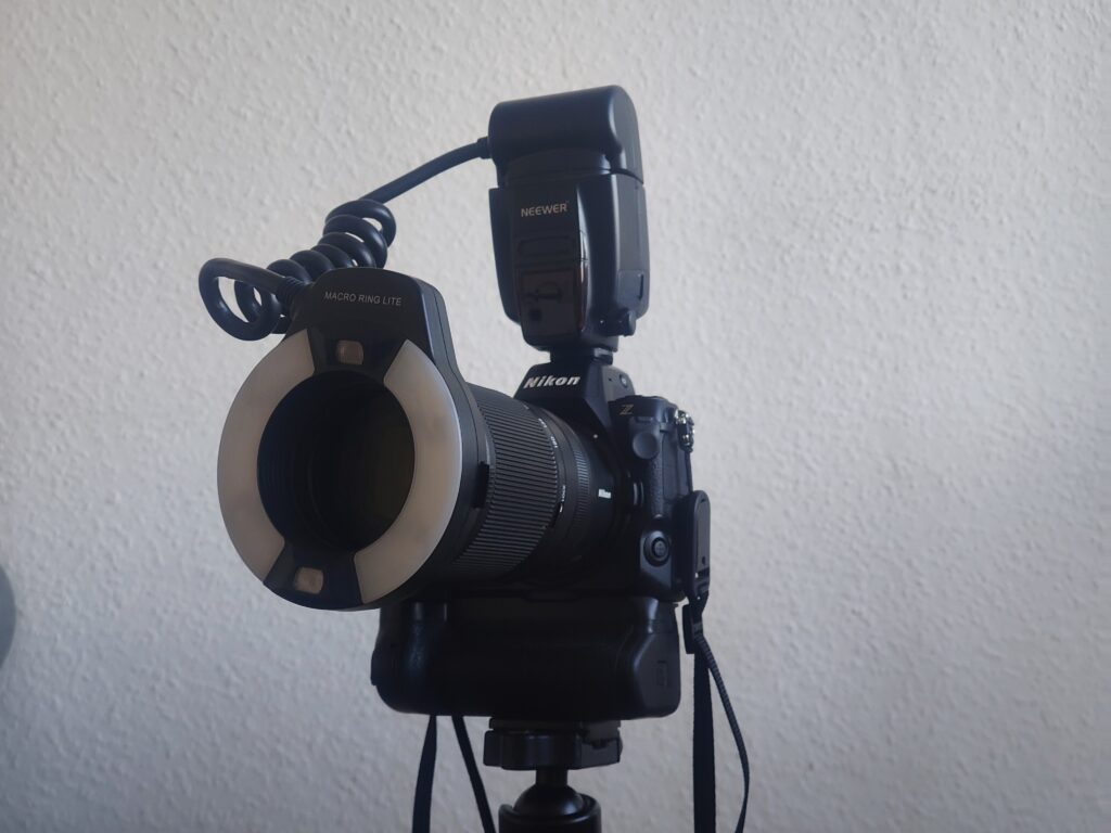 Das Bild sollte scharf sein. Also wählten wir eine kurze Verschlusszeit und eine hohe Blendenzahl. Das bedeutet aber auch, dass wir viel Licht brauchen. Also nutzen wir ein starkes Blitzgerät.